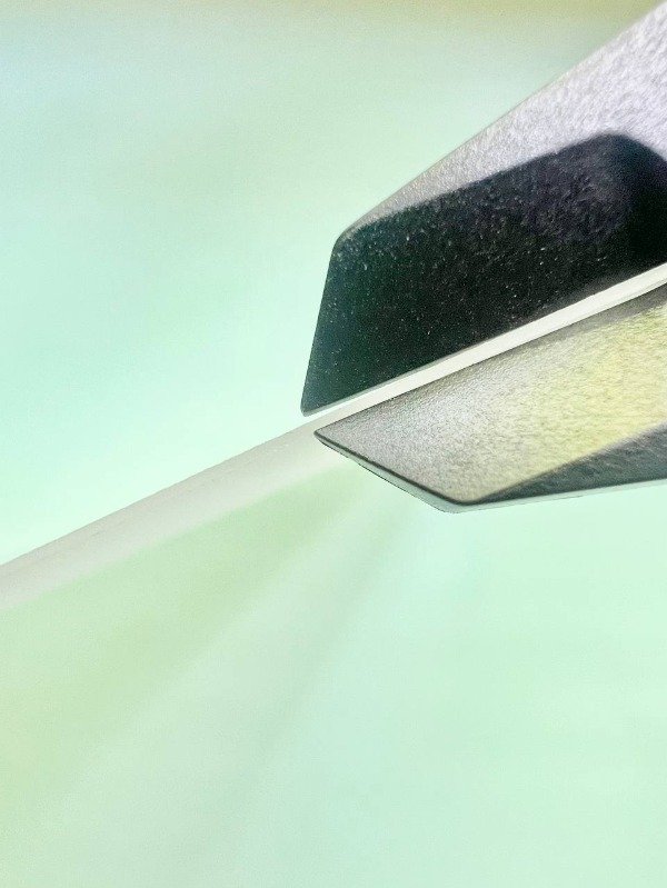 Es de 600 micrones un espesor que es 4 veces mayor a las transparentes rayaditas de los de anillado tradicional asi que queda bastante durita.