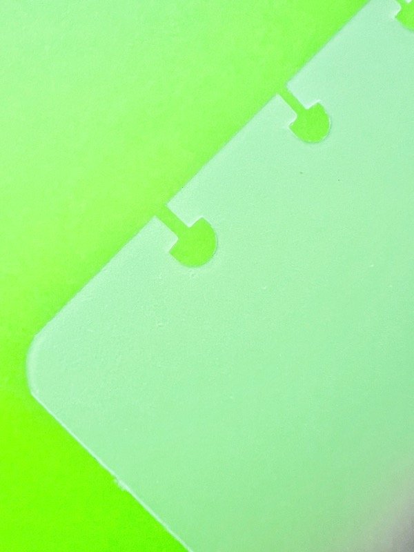 Tapa transparente esmerilada gruesita un poco menos que la de 1000 micrones pero bastante rígida igualmente.