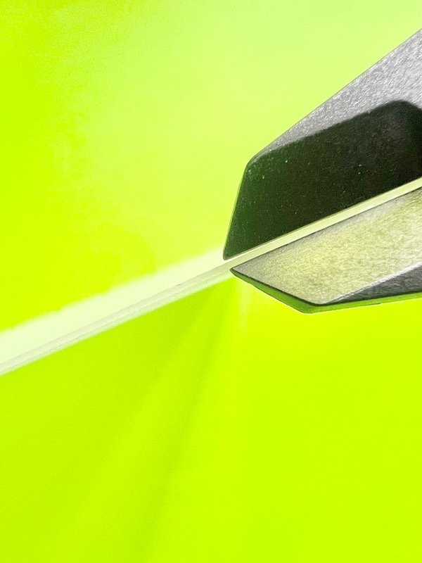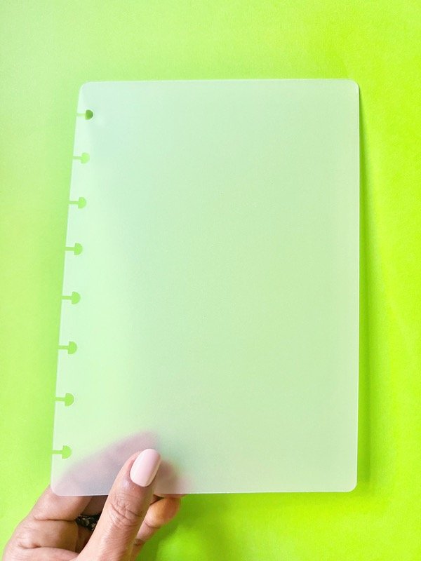 Es de 600 micrones un espesor que es 4 veces mayor a las transparentes rayaditas de los de anillado tradicional asi que queda bastante durita.